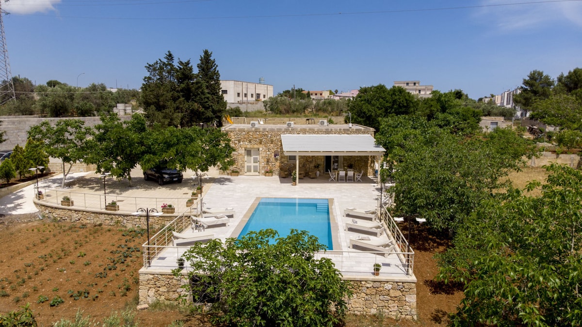 Uma Lamia antiga, recentemente restaurada, localizada no campo no famoso Valle d'Itria, entre Cisternino e Ostuni, a 25 min das praias e apenas a 15 min das vilas mais populares da Puglia. Viva o charme de hospedar-se numa casa de 300 anos, com tetos abaulados e paredes de pedra. Se perca no tempo sentado no pátio contemplando o terreno de 30 mil m2 com oliveiras e um muro com videiras seculares. Aproveite as noites frescas do campo tomando um drink na jacuzzi externa ou preparando um churrasco.