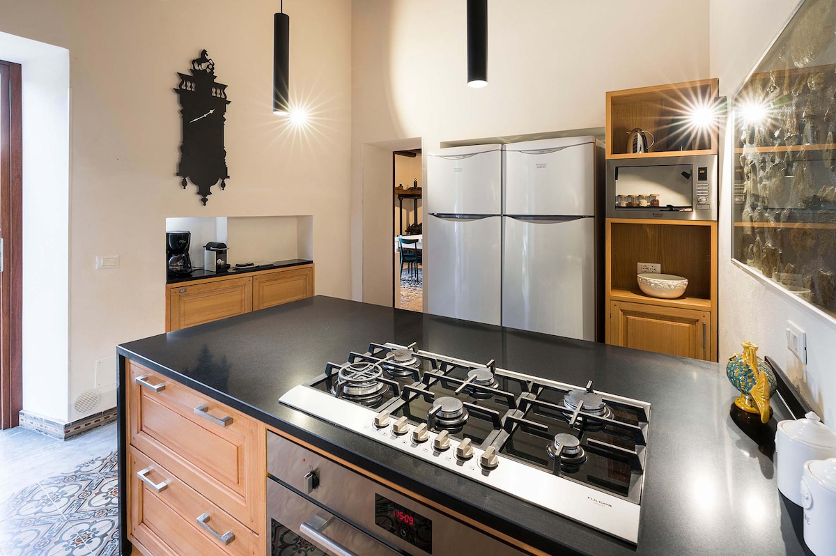 Inside the villa you’ll notice touches of exposed stone and a pleasant mix of antiques and contemporary pieces throughout, and more importantly, that the furnishings are both tasteful and comfortable. The main kitchen comes fully equipped with plenty of appliances, including an 8-burner gas stove, dishwasher, microwave and two refrigerators. An upstairs kitchenette is convenient for preparing light snacks and refreshments.