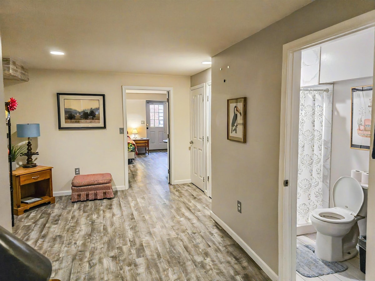 Classic central Bucks County location. Luxurious NEW bathroom with large shower! Guest suite is attached to the main house but is a locked self contained unit. Beauty abounds at this Superhost property! Sun filled ensuite bedroom & bathroom with bucolic pond & barn views. 7 minutes to Doylestown & close to Peddler's Village, New Hope, Lambertville, covered bridges, parks, lakes, rivers, hiking, kayaking, tubing... Come and enjoy the country and our quaint towns!