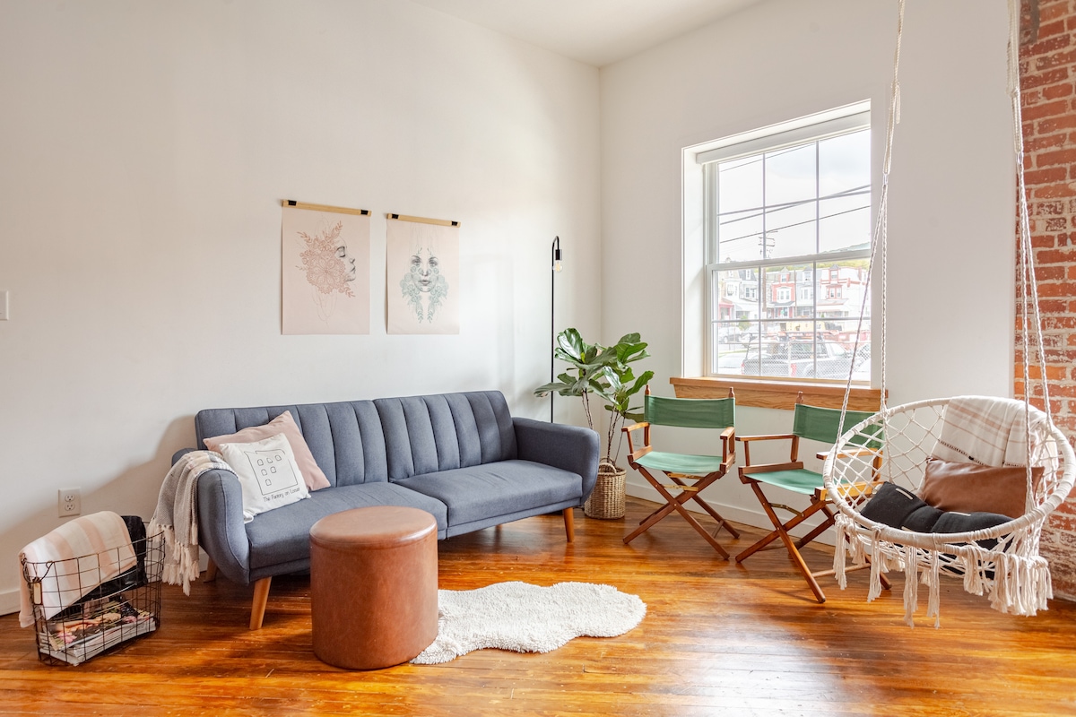 Our place is within walking distance of well known Main Street in Manayunk with dining, pubs and shops. Enter the living room where there is lots of light and comfortable furniture. Brand new bathroom features a large standing shower with natural stone flooring and large shower head. Brand new kitchen that opens out to a mini backyard oasis where you can relax or enjoy company. The entire apartment is decorated to accentuate the originality of the home.