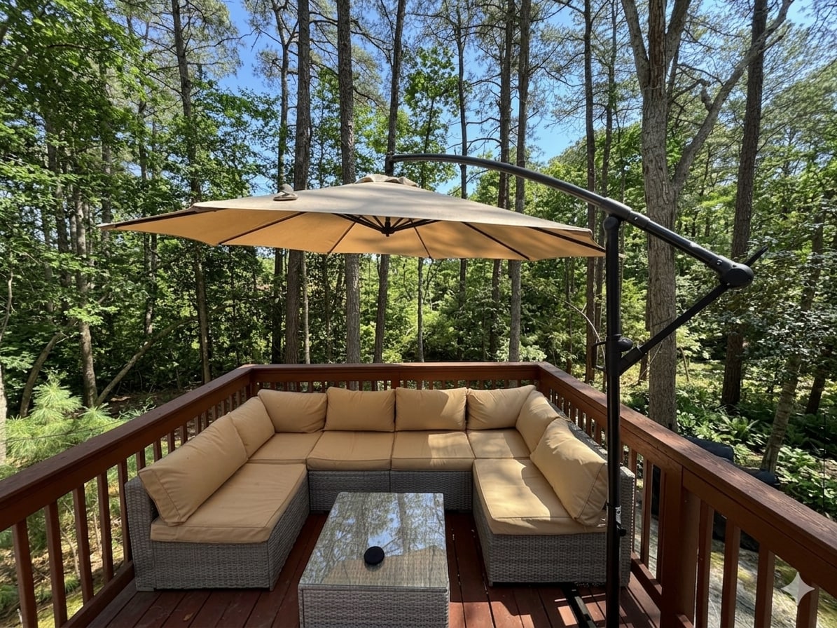 Haven on Adullam Lake - The Loft - a spacious, private second-story studio with a queen bed, full bath, and kitchenette nestled on a peaceful, family-owned 40-acre lakeside property, minutes from Stone Harbor and Cape May. Enjoy expansive lake and forest views from your private sunset deck, large windows that flood the space with natural light, hiking trails, hammocks, county bike path, and a crystal-clear lake with complimentary water sports equipment.
