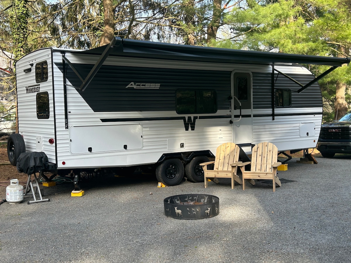 Camp Rusty Goat (our NEW 2026 Winnebago Access 25bh) is parked on our property (Deer Hive Acre) in Solebury Township, PA, when we aren’t on the road camping ourselves. We are situated on one acre on a quiet street where the deer visit us almost daily. Relax and enjoy camping near one of PA's best small towns, New Hope. We are one mile from Peddlers Village! Fully hooked up! (Electric, Water, Sewer). We offer wood for campfires, s’more’s kits, and more. Welcome to Camp Rusty Goat! 🐐