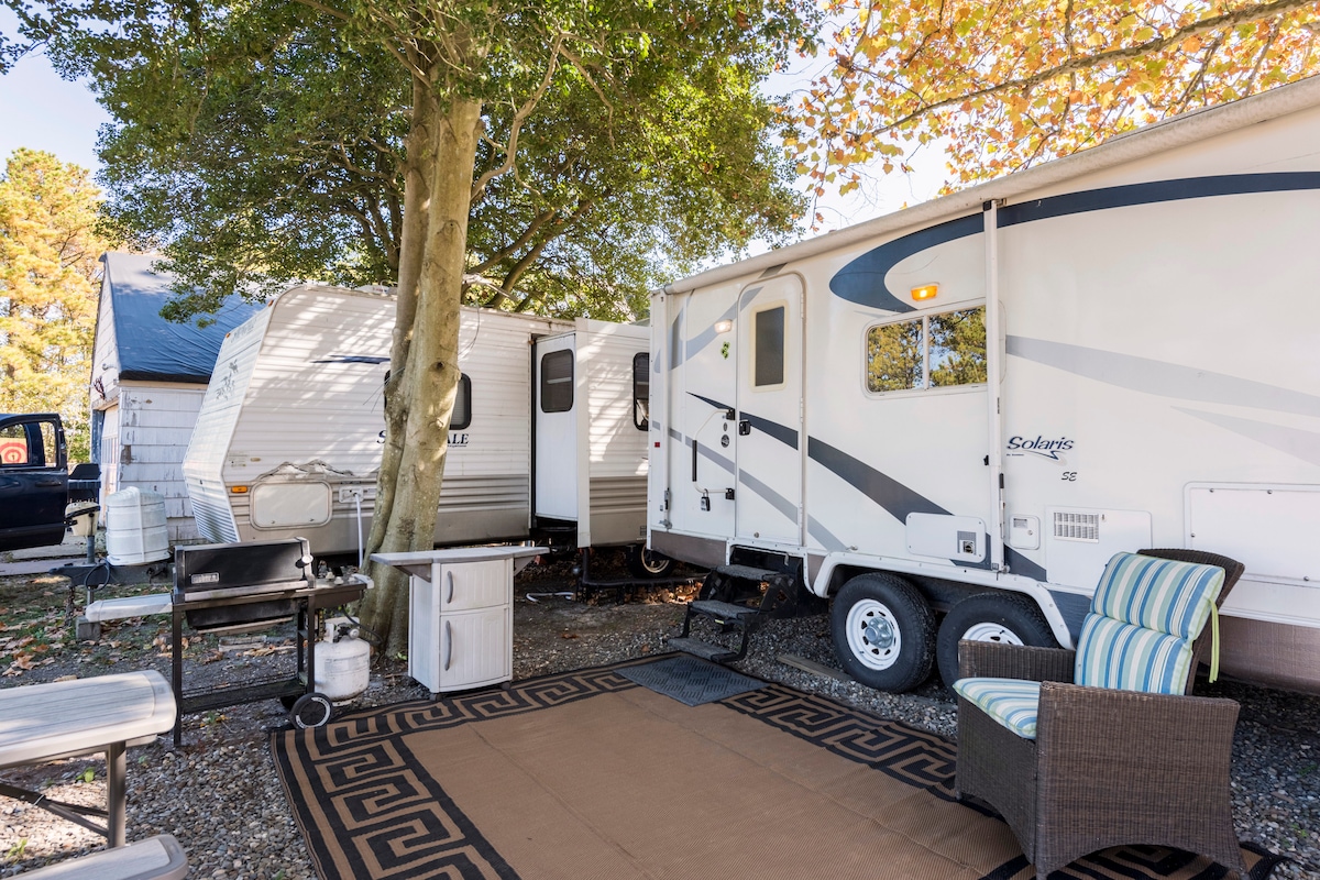 Welcome ! - Here you have air conditioning, hot water, TV, Wi-Fi, barbecue. the opportunity to cook, drink coffee. cold water. - Bath and pool towels, shampoos and soaps. - Outdoor table next to the caravan and at the pool . - Bowl for your pet . - large swimming pool for private use - RV space to dock a boat. -Free beach passes to use the beaches in Margate and Ventnor City - 10 Min to different beach towns Make your reservation at least 24 hours before the dates that you need.