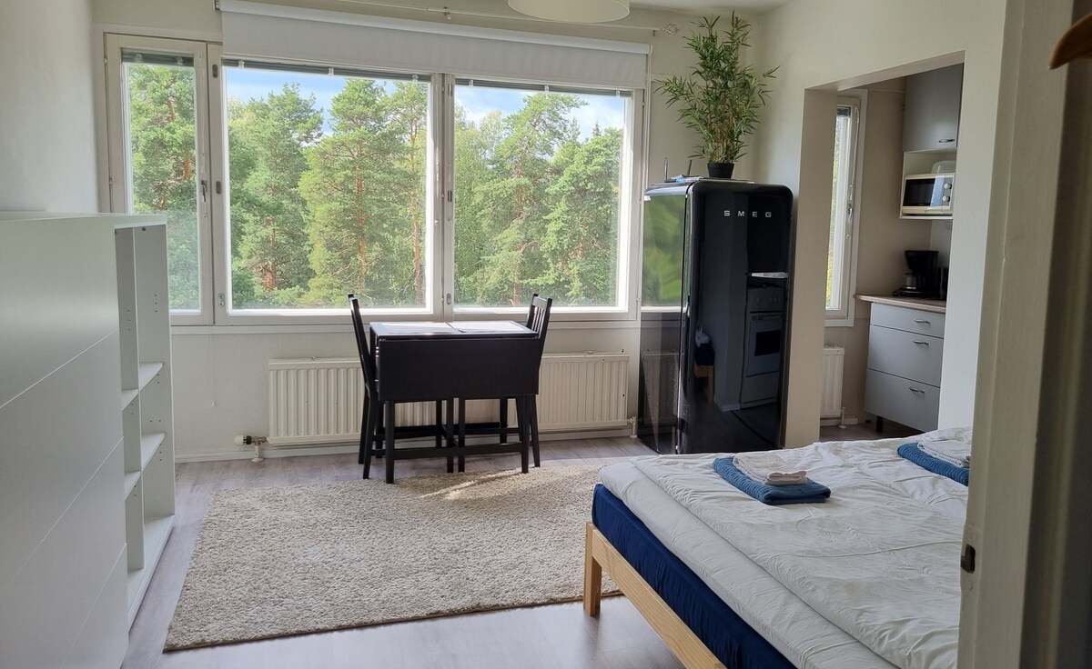 Pintaremontoitu viihtyisä ylimmän 6. kerroksen yksiö. Sijainti mitä parhain. Lyhyen kävelymatkan päässä ovat sekä matkakeskus että keskusta. Talossa on hissi. Asunnosta löydät puhtaita pyyhkeitä ja lakanoita jotka kuuluvat majoitushintaan. Renovated top(6th) floor studio. Ideally located within walking distance from travel station and the city center. There is an elevator in the stairwell. In the apartment you’ll find sheets and towels which are included in the price.