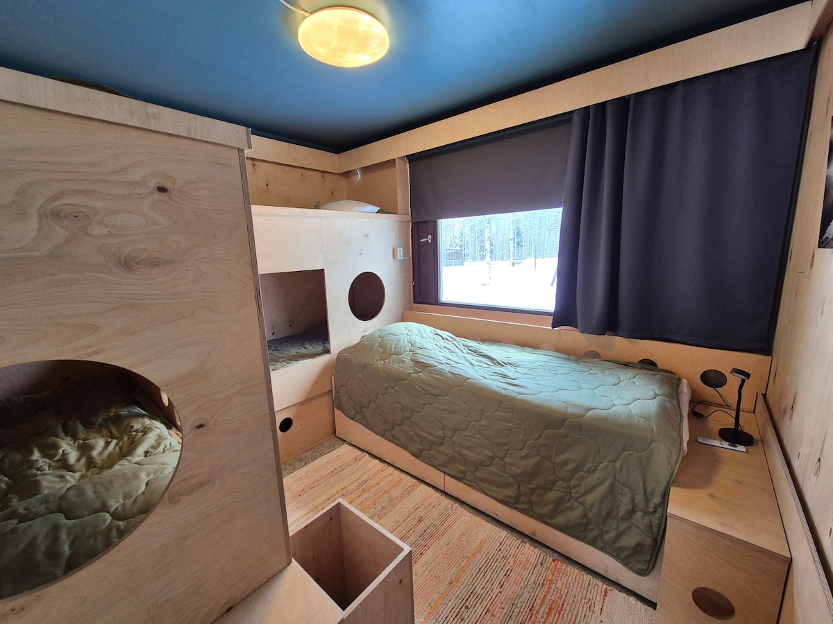Tervetuloa yöpymään pieneen söpöön tupaan jossa levitettävä vuodesohva ja pikkuinen keittiö. Tupa on pihan erillisrakennuksessa omalla sisäänkäynnillä. Lisänä on pieni aitta johon mahtuu 2henkilöä nukkumaan. Meillä on 6 huskya jotka juoksentelee vapaana aidatulla alueella ovat todella kilttejä ei siis tarvitse pelätä. Tarvittaessa voidaan myös lämmittää sauna lisämaksusta, pihalla telttasaunan lämmitys 10€/kerta ja ison saunan lämmitys vie puoli päivää ja kustantaa 40€/kerta.