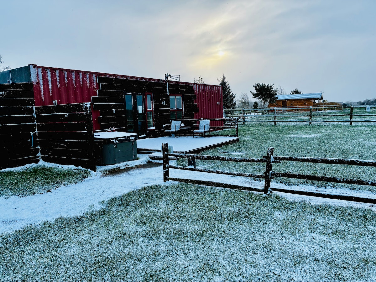 New for 2021 we have our converted shipping container lodge. Perfect for this years holiday as it is completely self contained in the middle of fields. This is a 4 person lodge, (suitable for 2 adults and small 2 children as the sofa bed is small double bed) benefiting from its own open plan kitchen/dining area, bathroom and double bedroom. Also own hot tub. Please note the garden of the lodge backs straight onto horses fields which there may be horses in during your stay