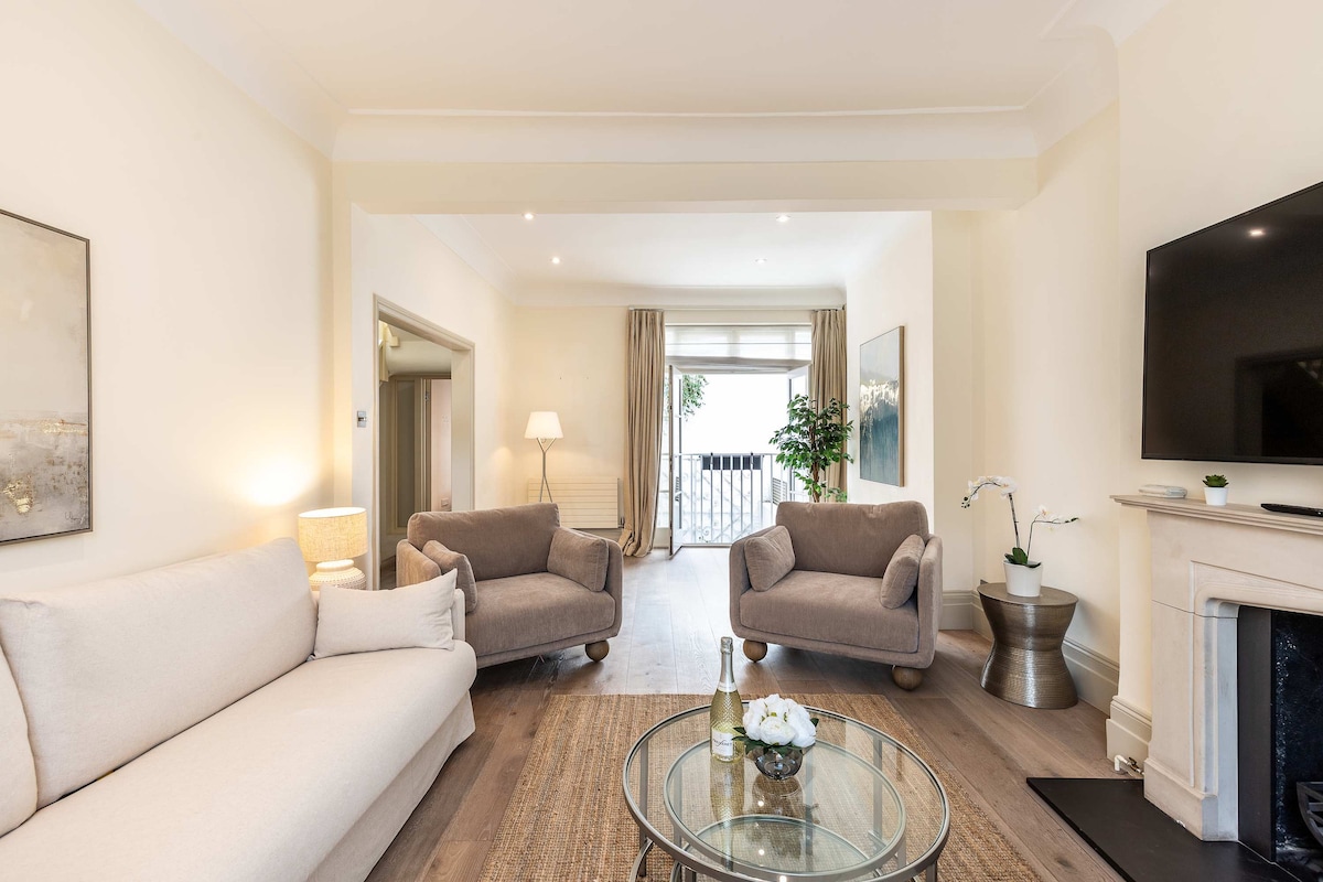 Welcome to your home away from home in the heart of Kensington & Chelsea, one of London's most sought-after neighborhoods. This charming garden flat has a gorgeous, private garden patio space for lounging or enjoying an espresso in the upper patio garden. The home features two cozy bedrooms with three beds to sleep up to 5 guests. This conveniently located townhome is ideal for families or small groups looking for comfort, convenience, and a touch of London charm.