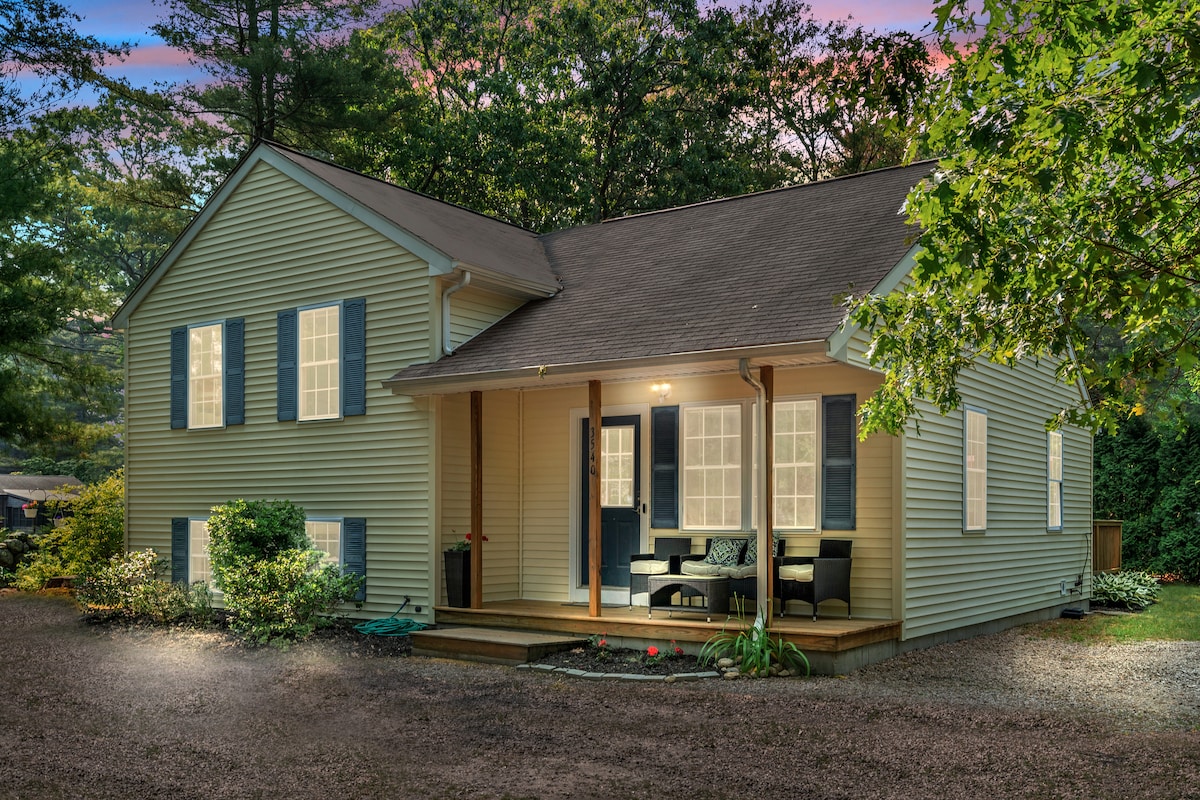 This peaceful and centrally-located place is a sunny and spacious modern one-bedroom cottage located in the heart of historic Wakefield. We're minutes from many RI beaches. Stroll downhill to a lovely park on Saugatucket River, then cross the charming footbridge into town. Here you'll find a variety of restaurants, cafes, and ice cream, plus excellent community theater, yoga, and interesting shops. Relax inside this light-filled home or sit out on the deck overlooking the gardens and town.