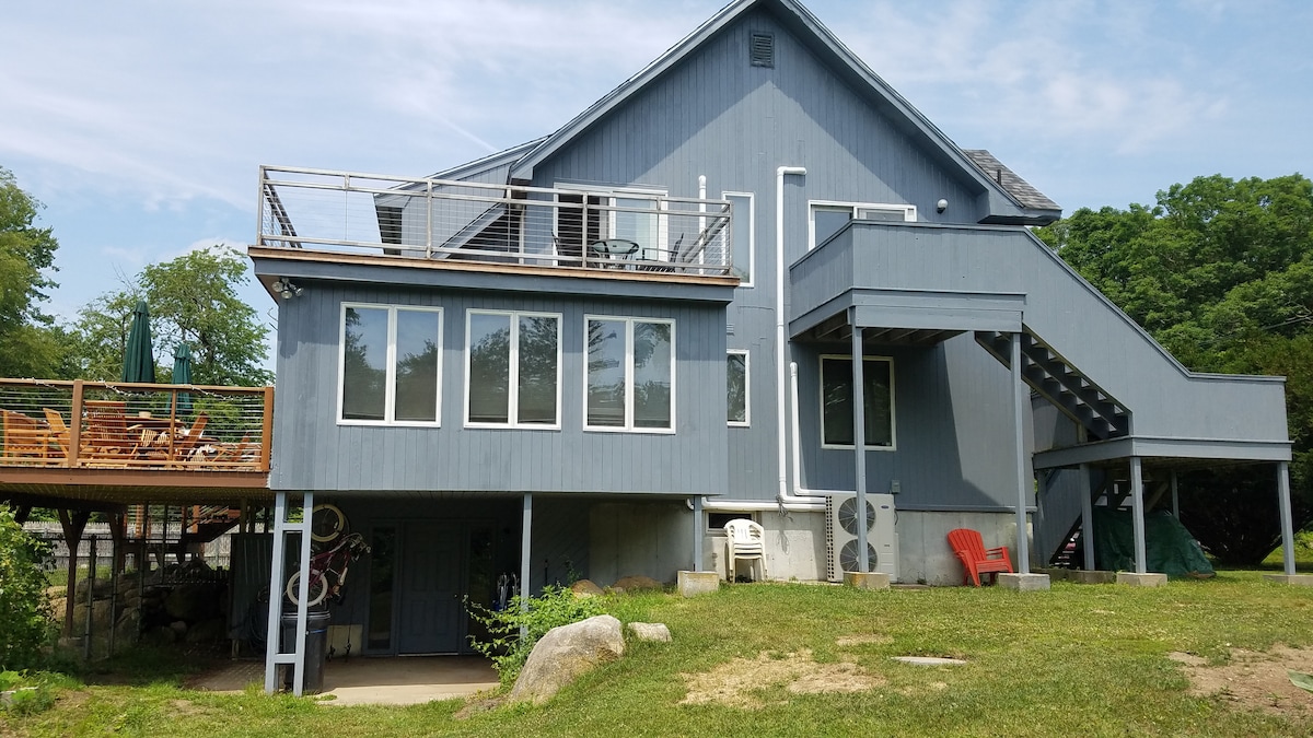 Our wonderful chalet, close to the water, and a private beach within a 5 min walk, is an ideal escape destination for any couple or family. Our open A-framed home has 3 bedroom, 2 bath, with a jacuzzi and comfortable beds and linens. It's well prepared for families. We have beach gear along with a backyard with a picnic table and large Weber grill. Our place is a 4 min drive from Historic Wickford with great restaurants. We are sure you will love our vacation home as much as we do!