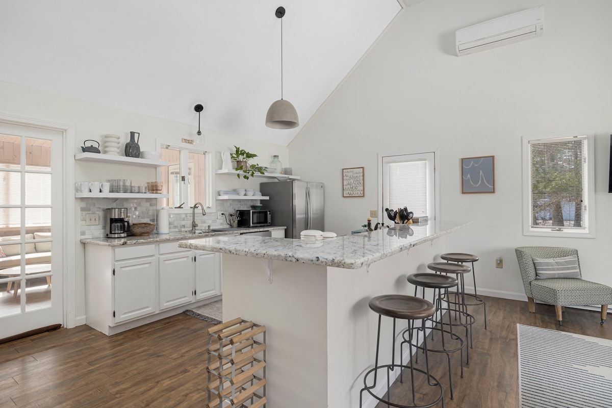 Nestled down a private road, enjoy a lovely waterfront home with sweeping 180 degree views of Potter’s Pond. Newly renovated and meticulously decorated. Unwind and relax on the back deck watching the extensive variety of birds and breathtaking sunsets. Spend your days exploring the pond in kayaks or try your hand at clamming, steps from the house. Located 1 mile from East Matunuck Beach, 1 mile from Tennis, Pickleball and Basketball courts. Walking distance to the renowned Matunuck Oyster Bar.
