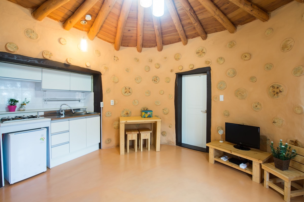 Built in 1866, this authentic Jeju stone house (Hanok style house) has been renovated with all modern comfort. Nestled among Gimnyeong stone alleys, situated on Olle trail no. 20, only 3 mn drive from Gimnyeong beach, it is the perfect place for you to enjoy the authentic island lifestyle. This healing retreat gives you exclusive access to a private house Bakkeori (external house), and small private garden. Free street parking. Roberta and Youngsoo