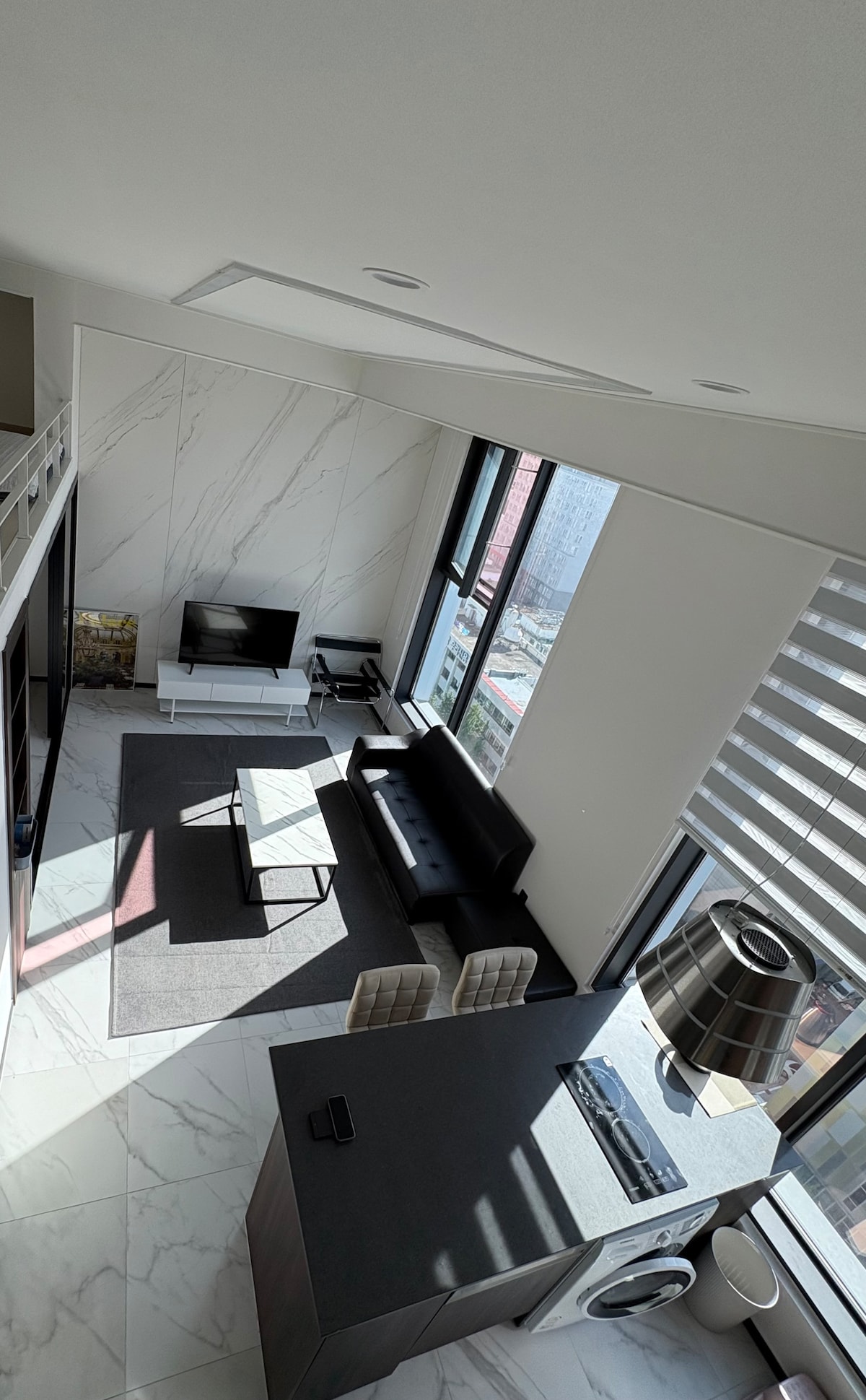 엘리베이터 있음. 세탁기 있음. 건조기 있음 코엑스 현대백화점에서 길을 건너면 바로 만날 수 있는, 매우 좋은 위치의 숙소입니다. 2023년 신축 건물로, 고급스러운 인테리어와 세탁기, 건조기, 의류관리기, 회의책상 등등 편의시설을 갖추었습니다. 2개의 퀸사이즈 침대가 복층 위에 있습니다. 4.5M 높은 천장고로 전세대 복층형 구조를 가지고있으며 통유리창문으로 강남 삼성동 시티뷰를 즐길수있습니다 럭셔리 하이엔드 고급화 주거 환경과 첨단 IOT 스마트 서비스 이용가능합니다 입주민 전용 휴게정원 제공 지하철 2호선 삼성역 5번출구 200미터 거리로 도보 2~3분이면 갈수있습니다 공급면적 22평 전용면적 13평 복층 분리형 1룸 1거실 1욕실 구조 역세권과 더불어 도보 3분이내 거리에는 코엑스몰,현대백화점,도심공항터미널 면세점,스타필드,영화관,이마트 등 풍부한 인프라가 모여있는곳에 있습니다