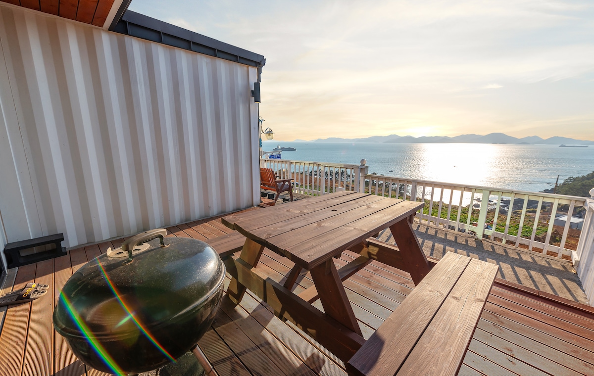 고래의꿈은 남해 빛담빌리지의 가장 앞쪽에 위치해 있어서 모든 객실이 오션뷰입니다. 모든 객실에 딸린 전용 테라스에서 파노라마로 펼쳐진 남해의 바다를 여유있게 즐겨보세요. 아름다운 석양과 여수야경은 더욱 낭만적인 추억을 만들어 줄 것 입니다. 배낭여행을 사랑하는 고래꿈지기 부부가 여전히 여행중인 고래의꿈에서 같은 꿈을 꿔 보시는 건 어떨까요? ^^/ * 무료 웰컴드링크 & 조식을(샌드위치 세트) 제공합니다. * 바베큐 숯, 그릴이 대여가능합니다. -그릴,숯,쌈장,기름장,김치,김,콜라,컵라면이 제공됩니다^^ -고기,야채,햇반 등 먹거리는 사오셔야 합니다. -우천 시 실내 전기그릴(자이글)로 대체됩니다. -이용요금은 2인 2만원/ 3인 3만원입니다.