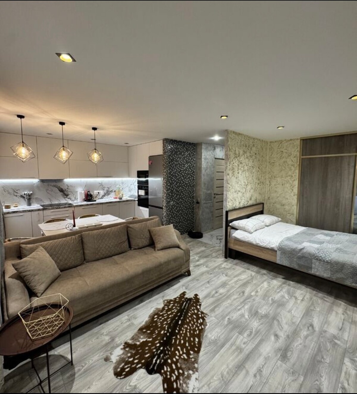 Mājīga un gaiša dizaina studija Liepājas centrā ar king size divguļamo gultu, ēdamzonu, pilnībā aprīkotu virtuvi. Vislielāko uzmanību pievēršu tīrībai – vairums viesu studiju vērtē kā mirdzošu tīru. Studija izskatās precīzi kā bildēs. Plaša, moderna kāpņu telpa. Visa ēka pilnībā rekonstruēta 2020.gadā.