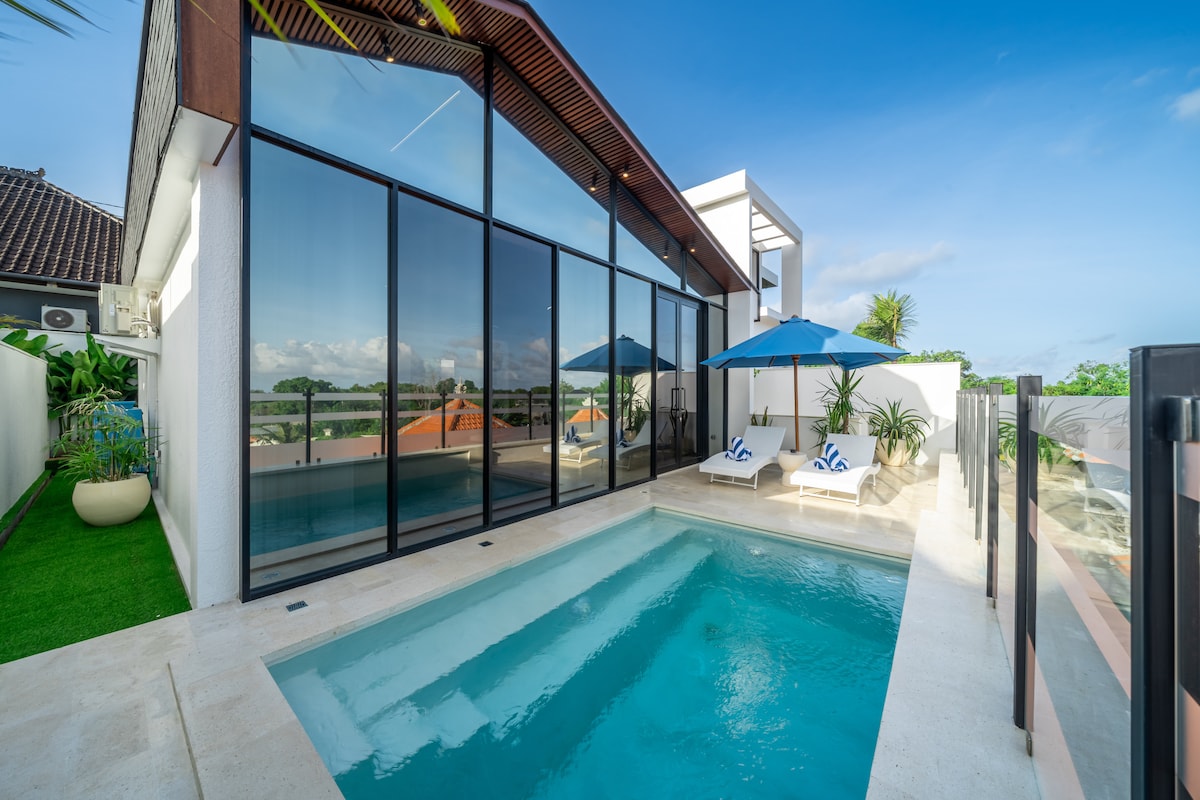 Brand New Designer Villa in Peaceful Jimbaran • 2 stylish air-conditioned bedrooms with en-suite bathrooms • Master suite with a luxurious bathtub for ultimate relaxation • Sparkling swimming pool & large outdoor terrace for BBQs • Open-plan living room & fully equipped modern kitchen • 300 Mbps Wi-Fi for work & streaming • Netflix, PS5 on request • Daily cleaning with fresh towels & linens • Baby cot & high chair on request • Concierge service for airport transfers, scooter rental & more