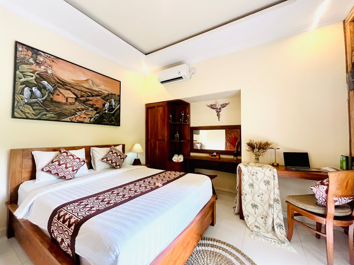 Located in the heart of Legian, this cozy 3-bedroom cottage is nestled among gardens & a pond. Don’t miss this rare opportunity! *Free airport transfer on checkin for stays 7 nights & longer.* ► Recent upgrades include: - New outdoor chairs & bean bags - 43” LG Smart TV - AC unit in the living room - New dining table - Sun protection films on all windows to reduce heat & enhance privacy.
