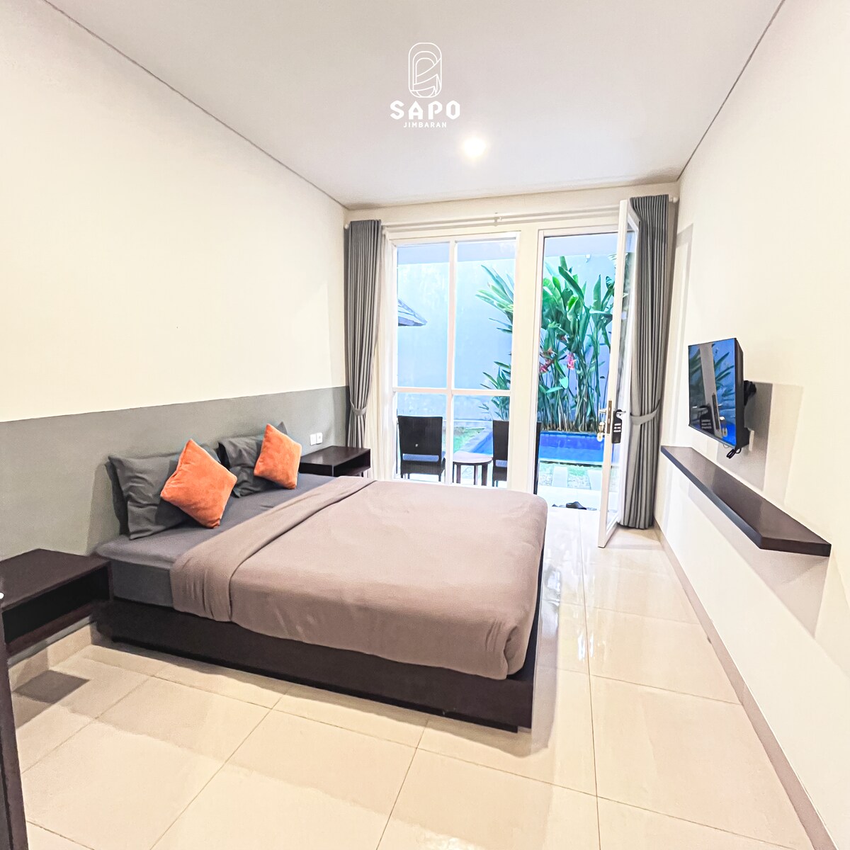 Chambre avec grande salle de bain dans Boutique-Hotel ( avril 2024) de plein pied sur magnifique piscine lagon et joli jardin. Mediterranean vibes et deco boheme pour cet hotel neuf situé a 5mn de Bingin et ses plages et du centre de Uluwatu ( Shops, restaurants, etc...) Coin salon avec smart TV, wifi haut débit, parking privé. Petit dejeuner a la carte inclus. Seulement 4 chambres dans l'etablissement, privacy maximale. Adults only.