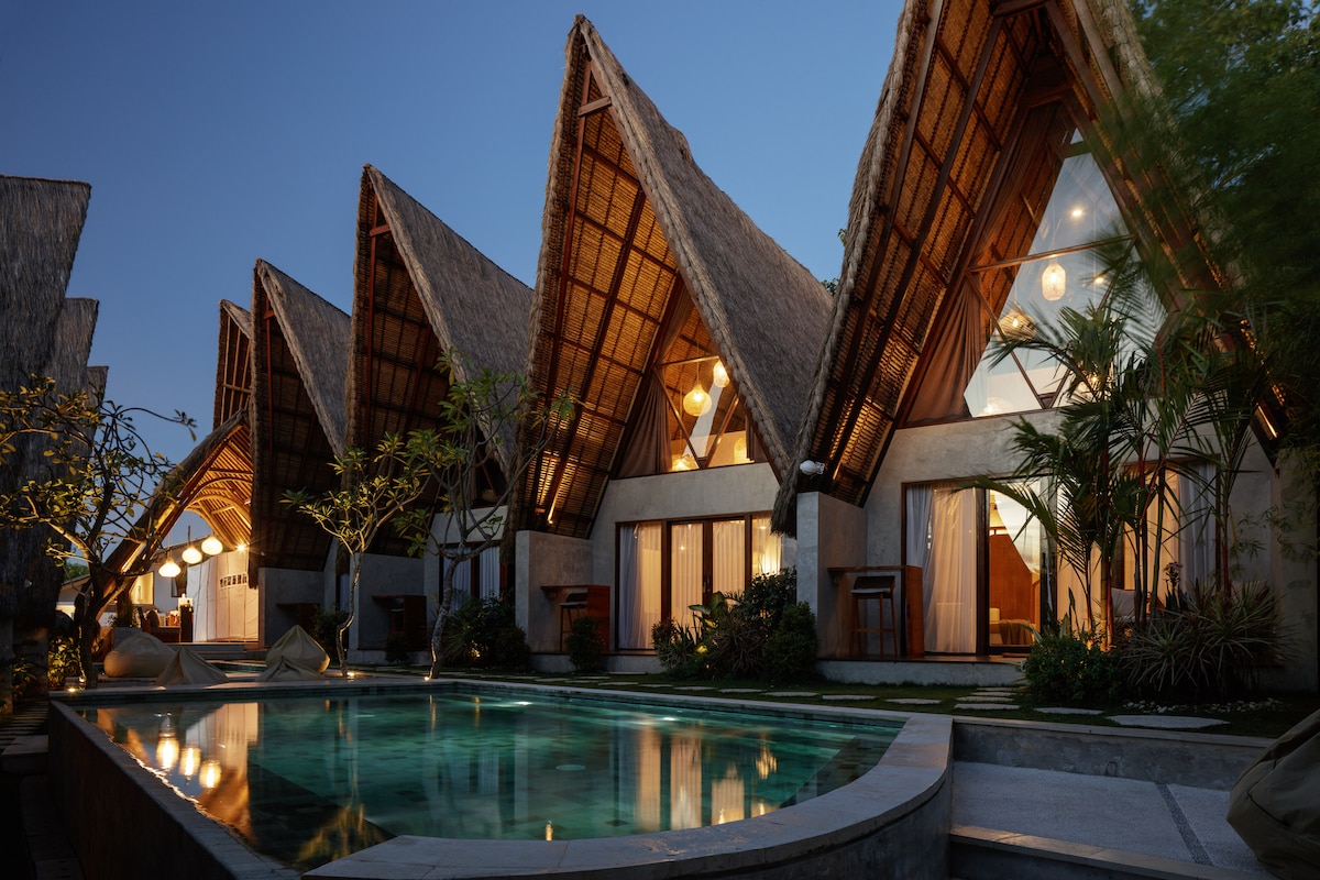 位于Pererenan的独特六角形房间,带共用泳池