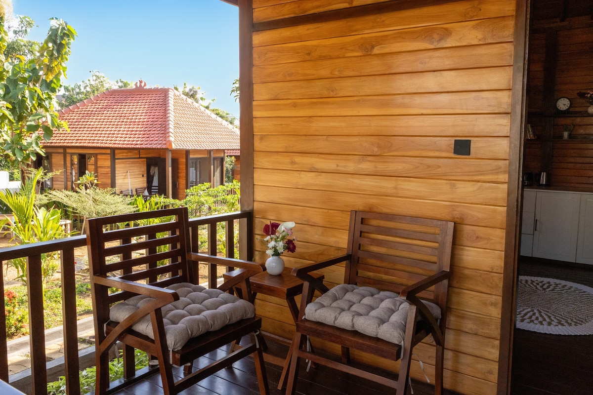A secluded and romantic boutique villa on the cliff of Impossible Beach, with a breathtaking view of the Indian Ocean from your private balcony. This is the ideal place for your honeymoon getaway, where you can relax and enjoy the beauty of nature with your loved one in a unique and cozy treehouse room. Our honeymoon suite is furnished with a spacious balcony with a dining table and a sofa, and a luxurious bathtub where you can soak in the stunning sunset view over the ocean.