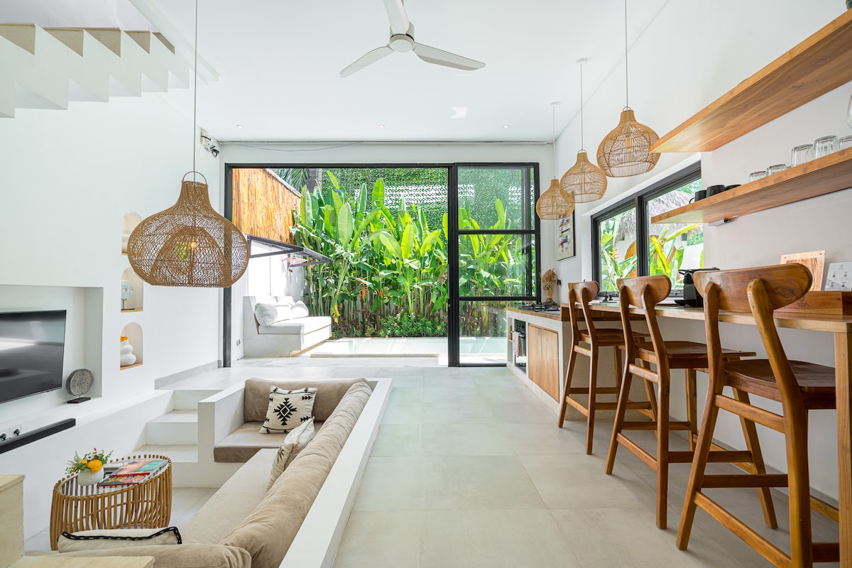 Villa Vera is a contemporary mezzanine-style hideaway in the heart of Balangan. Soft natural tones, high ceilings and warm light create a peaceful, modern atmosphere. The upper-level bedroom overlooks a cozy living area with Smart TV, dining corner and a fully equipped kitchen. Outside, a private pool surrounded by tropical plants and bamboo fencing for privacy offer a calm oasis. Close to Uluwatu’s beautiful beaches, trendy cafés and famous surf spots, yet perfectly tucked away for relaxation.