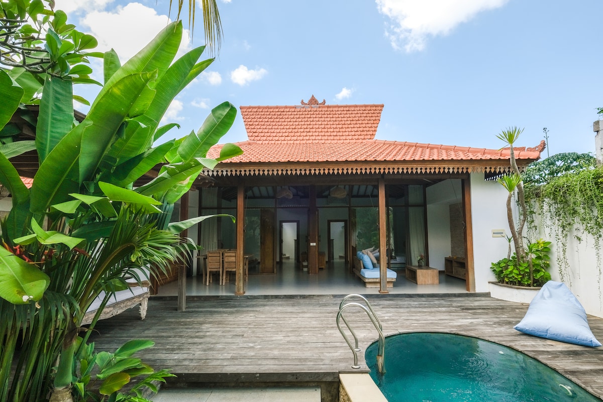 Sunbathe around the 10-meter private pool in the lush courtyard of this tranquil retreat. This home combines mid-century Californian architecture with the tropical essence of Bali. Bespoke furniture has been built and custom-created for this space. GENERAL NOTE: I also own the property next door. Bookings for both villas can be made in conjunction for larger groups. Please check other property under my profile.