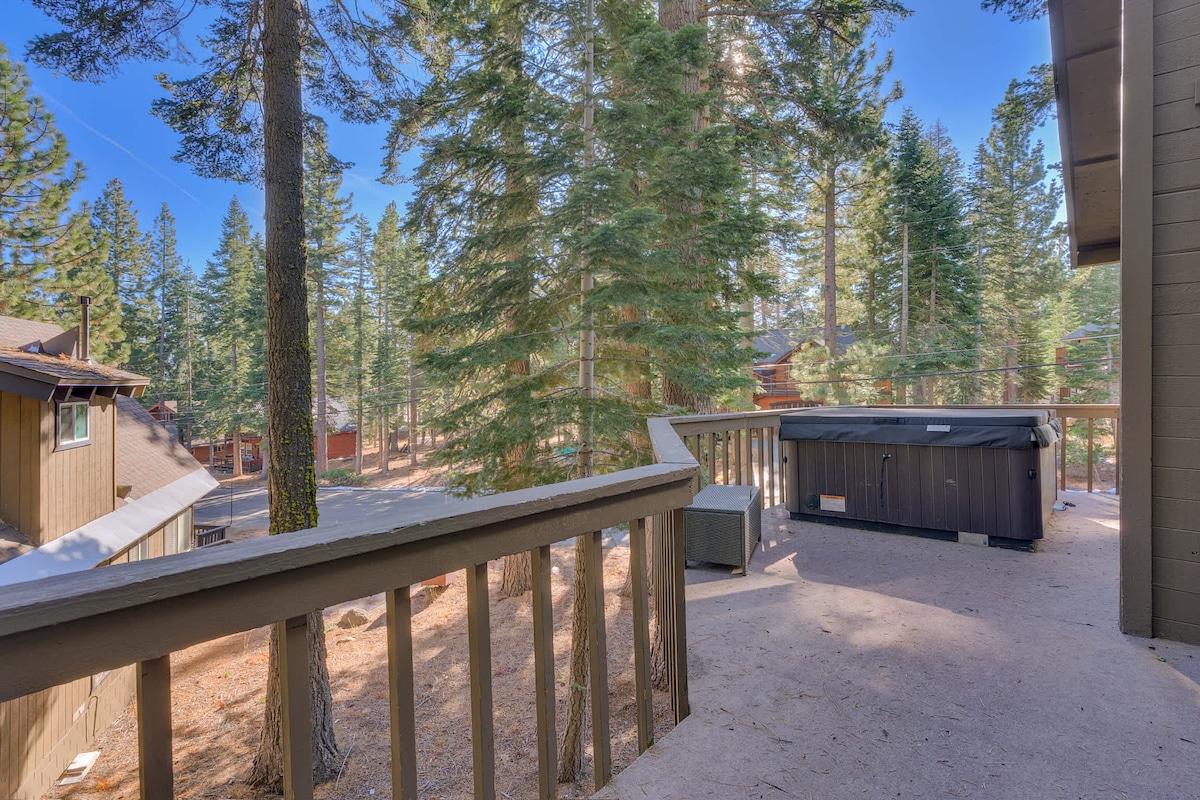 In Tahoe, "cozy" means cramped and "cabin" means old. Not here! Totally fresh and modernized, this property is ideal at only 5 minutes to beaches & 8 minutes to skiing. Either as a stylish adult retreat for 1 or more couples, or a totally family-friendly spot, we offer free extras including: a hot tub for 8+, bbq, bar, office, heated 2-car garage, car charger, crib, toys, queen airbed, full laundry, coffee, and snacks - all with a walkable forest out the back door! STR permit: WSTR23-0082