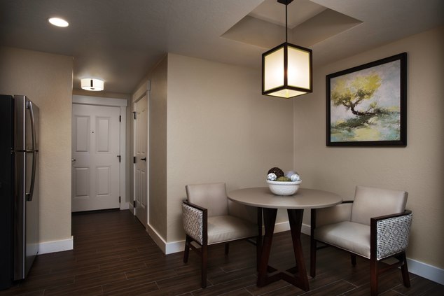 Read entirely before booking. Luxury Marriott studio with queen bed and padded chair. Extra people are allowed to provide their own sleeping space on the floor. Marriott will not supply additional bedding. Full kitchen. Dining table for 2. Hot tubs, heated pool, sauna, workout, relax by the fire. World class Marriott accommodations. You are required to pay a $135 cleaning and $45/nt valet parking fees (if used) at check out. Read parking details. Your booking means that you agree to this.