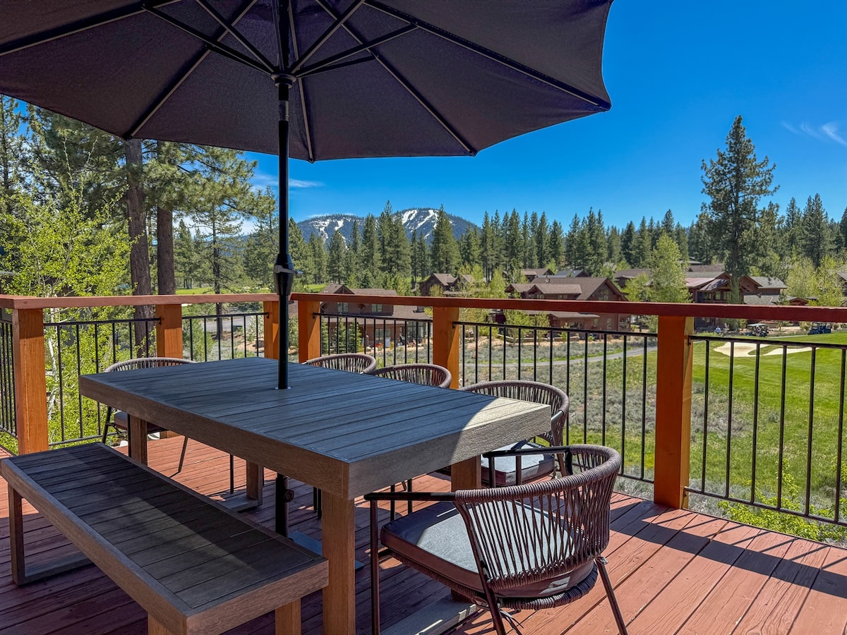 🌲 Private Hot Tub on the patio 🌲 Two spacious living rooms with Smart TV's 🏔️ Stunning mountain and golf course views 🌲 Cozy Living room with gas fireplace and stunning views of Northstar 🌲 Centrally located for hiking, biking, skiing, shopping or exploring downtown Truckee
