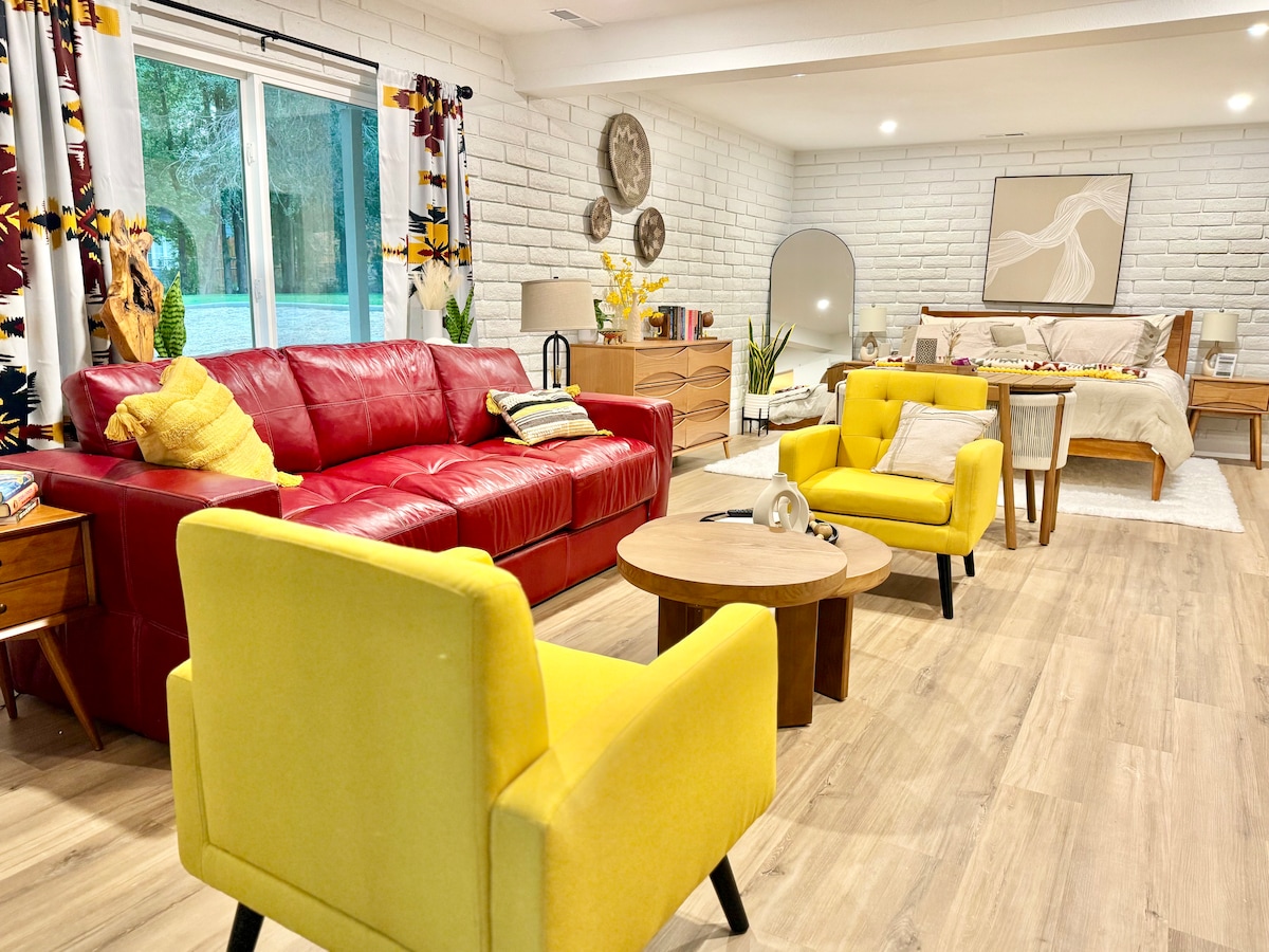 “Hakuna Matata” is a beautiful, cozy, private 1 bedroom and living room mother-in-law unit, with its own separate entrance It has a living room/bedroom with queen size futon, and bedroom with a sleep number King bed, kitchenette (induction plate, convection microwave, fridge) and full bathroom. We are permitted for 4 guests, more suitable for 2 adults and 2 kids (under 13), or 3 adults. Meaning of Hakuna Matata in Swahili is “NO WORRIES” - which is exactly what you will have “for the length