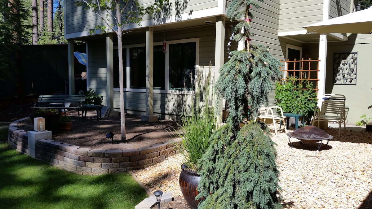 **No Pet Fees**-Fully Fenced secure Yard This super comfortable bungalow is less than a 10 minute walk to everything South Lake Tahoe and Stateline have to offer. Tastefully decorated, classic Tahoe. A perfect get away. Set up for working remotely with hi-speed WiFi and comfortable work spaces including a beautiful backyard. The beds and linen are first class to make sure you are pampered in your own private Tahoe paradise. National Forest land and trails 2 blocks away.