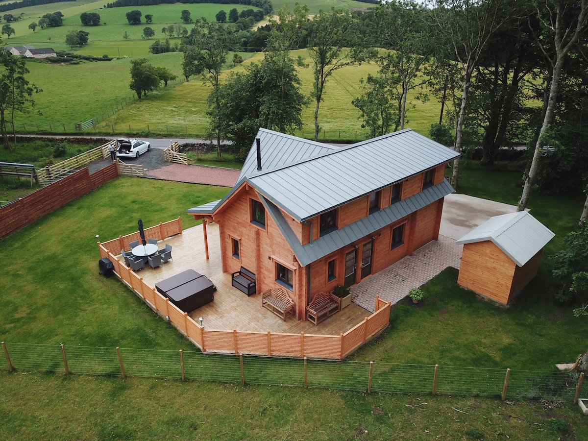 Bizzyberry Lodge is a luxury modern log cabin, complete with hot tub set in it's own private woodland garden with stunning views of Tinto Hill and surrounding countryside. Here guests can enjoy the privacy of a peaceful get away, but have the convenience of being located just 1 mile from the traditional Scottish market town of Biggar, only 1 hour to Edinburgh and Stirling and just 40 minutes to the heart of the Scottish Borders. Sorry but no pets at this property.