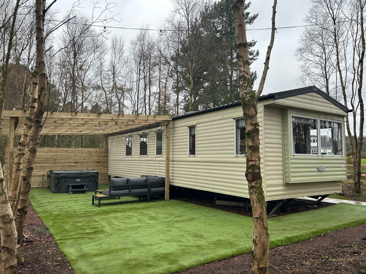 舒适的苏格兰林地度假屋、热水浴缸和桑拿