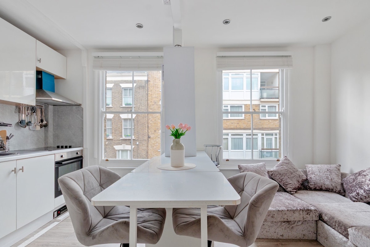 An interior design redecoration was finished in June 2024. Enjoy easy access to everything from this one-bedroom flat located in famous Kensington Borough. This ground-floor flat is located on a quiet residential street, just off Kensington Church Street, only a short walk from High Street Kensington, Kensington Palace and Notting Hill Gate, Holland Park, Kensington Gardens and Hyde Park, Royal Albert Hall, Natural History Museum, Victoria & Albert etc. About 5-8-min walk to tube stations.