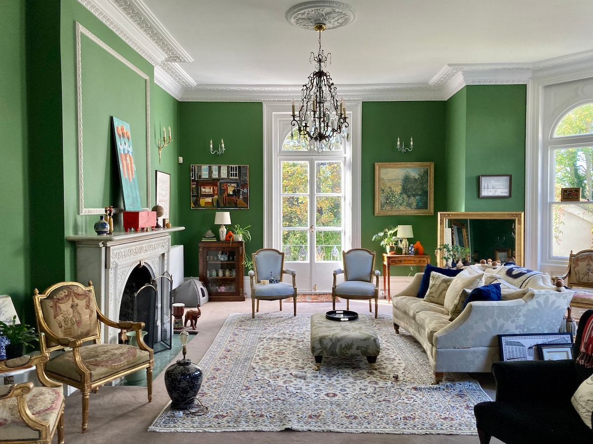 Full of period character and charm, exceptionally large (200m2) historic home. The apartment has been updated to modern standards but retains the original features typical of the Georgian period. This include very high ceilings (> 3.2m), original wooden floors, a total of 5 large marble fireplaces, sash windows, shutters and coving. The elevated position and being surrounded by trees gives the feeling that you have escaped the buzz of busy London, even though you are in a built up area.