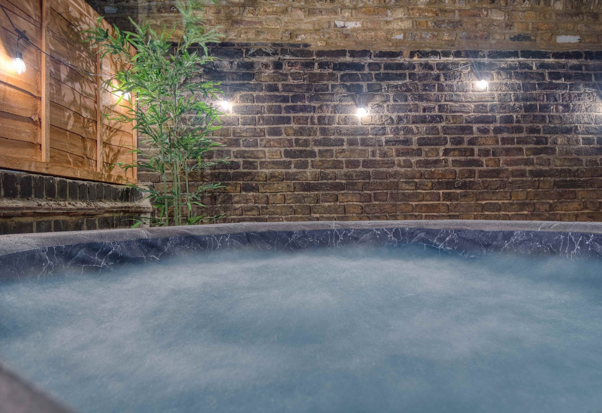 Visit London with Your Own Private Spa! 5min walk from Underground Station-30min to City Center. Double Jacuzzi bath for romantic time with your Love one as well as shaped for two Sauna with Aromatherapy equipment. 42" TV for Bath and Sauna. Bedroom designed to fit everything you need as a couple to spend perfect time together. There is a 7:1 Cinema System with top spec speakers located for dolby surround and 72" screen +4K Smart Projector. Fully equipped for memorable stay+ ;)