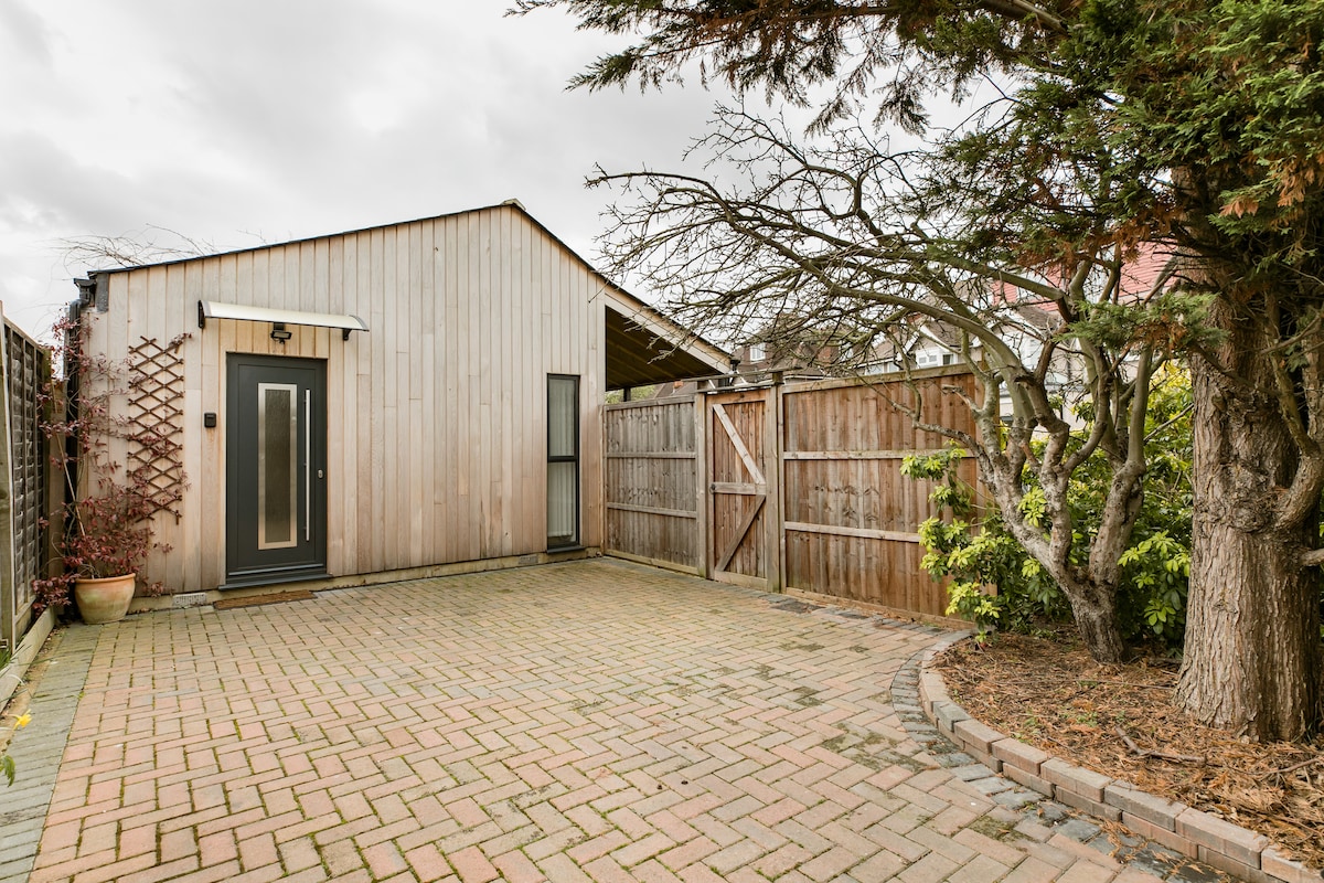Welcome to Applecourt, a lovely self-contained cedar-clad cabin with its own private drive and courtyard. Located just 1 minute away from the A3 on New Malden's Thetford Road, Applecourt is a perfect, relaxing get-away. Enjoy a jaunt down to the Surrey Hills, take in history at nearby Hampton Court palace or catch the train to Wimbledon only two stops away. (Last stop Waterloo!) A true haven away from home, enjoy the cherry blossom courtyard in spring and the juicy pink lady apples in summer!