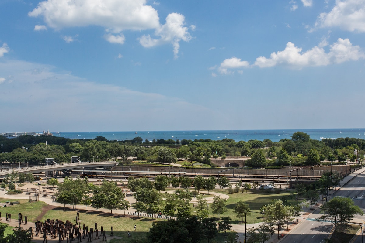 Feel at Home, Unwind, and Enjoy the amenities you deserve next to Grant Park! Most homes don’t provide professional service along with “local vibes.” Guests love staying with us because: ✅ Beautiful views of the Park & Lake ✅ Central Location ✅ Parking garage attached to building ($15-30 / night - Operated by LAZ) ✅ FAST WIFI ✅ Comfy KING beds ✅ Rooftop Deck ✅ 1 block from Red, Orange, Green "L" subway ✅ Close proximity to Park, Soldier Field, Museums