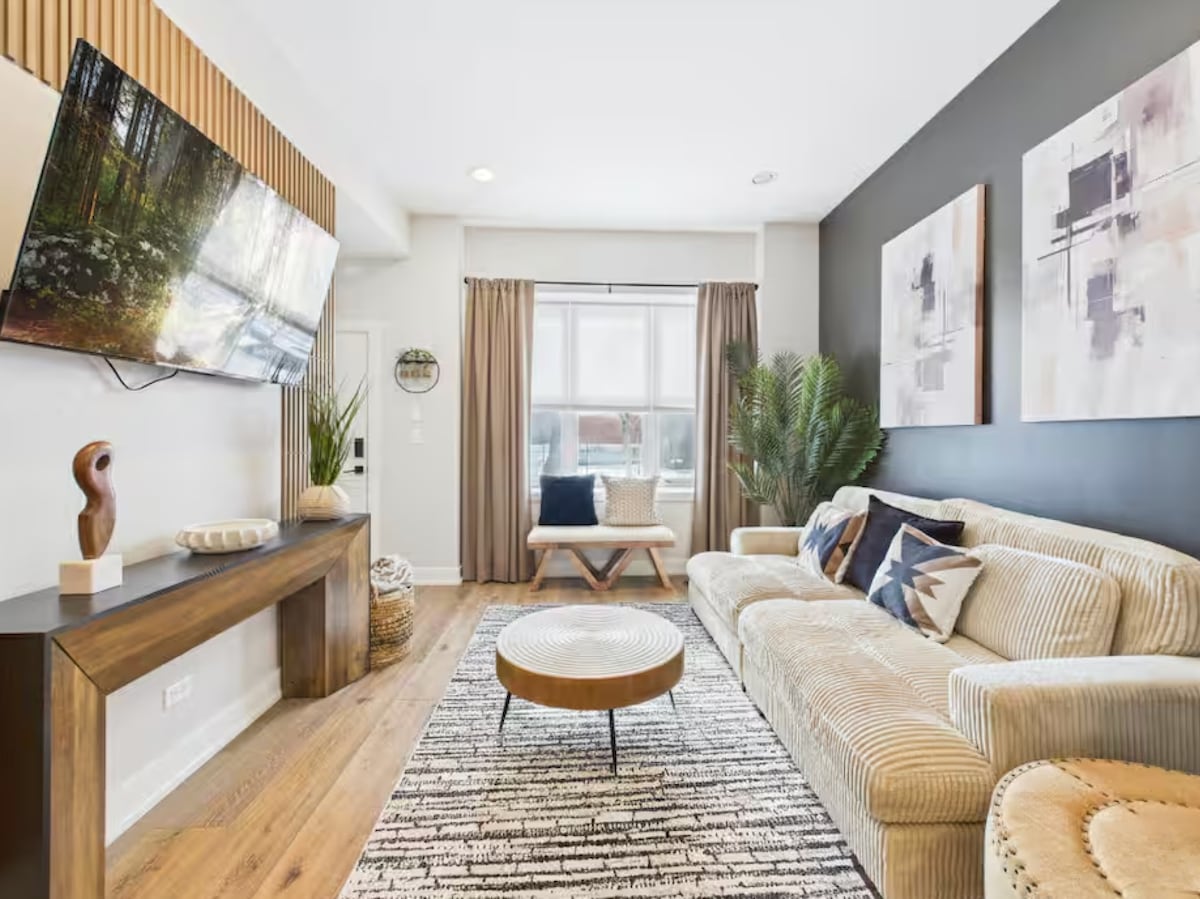Urban oasis in Humboldt Park, where the local’s live! Lofty, open-concept w/ exposed brick walls, & lower ceilings: • 2BR, 1 Bathroom + futon • Fully equipped kitchen • Private space for late-night chill sessions & good vibes 🌿 • 2.4GHz guest WiFi for emails, & light work • Lush backyard • Free easy street parking 1/2 block away • On-site vending machine & free laundry Loud levels at night is not a problem. You will also hear the upstairs neighbors footsteps & occasional dog barks.