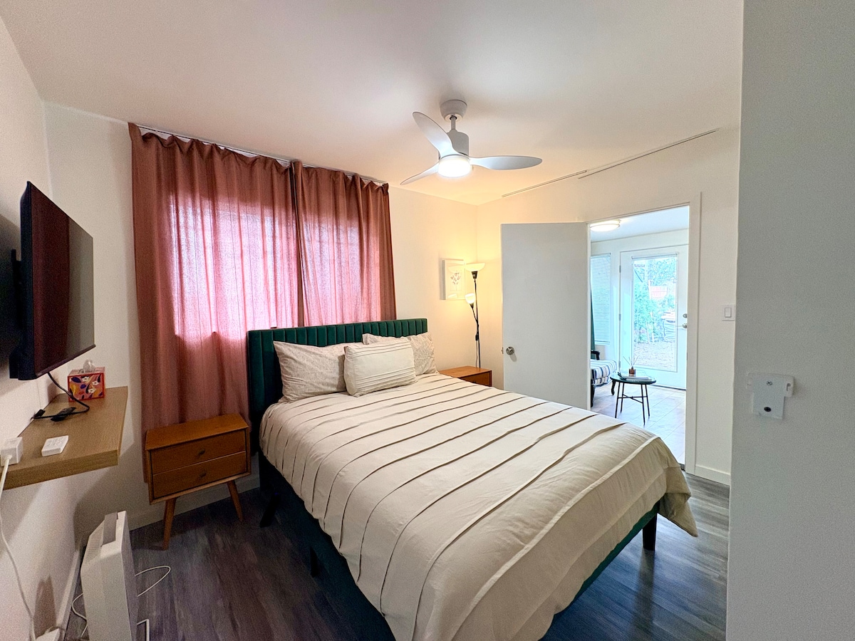 Brand new dreamy cosy guest house at the heart of Venice 5min by car from the beach & the famous Abbot Kinney blv with: -Cute garden with wood fire place -Comfortable Queen size bed with quality sheets, TV and 2 wardrobes -Large modern shower with Eucalyptus steam experience! I offer an optional “ROMANCE PACKAGE” who comes with petals of roses, candles and a bottle of champagne to SURPRISE your love one! 🌹🥂 Also I offer optional massages made by a professional certified the therapist