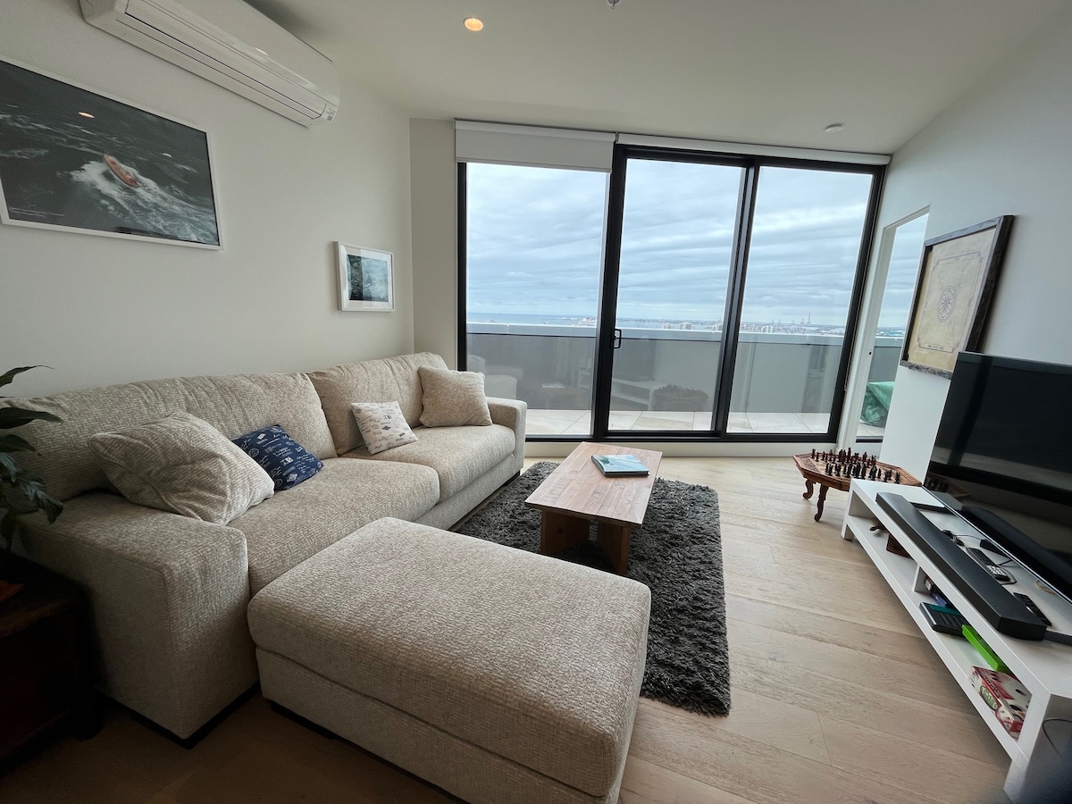 The whole group will enjoy easy access to everything from this centrally located place. Full access to spacious 3-bedroom / 2-bathroom apartment in brand new condo, conveniently located within 1km of Melbourne city centre and its main attractions, and 2km from Port Philip Bay and beaches. Accommodates up to 6 people. Benefits from stunning Melbourne City and bay views from very large and private balcony. Offers access to BBQ area and includes a heated outdoor pool, steam room, gym & sauna.