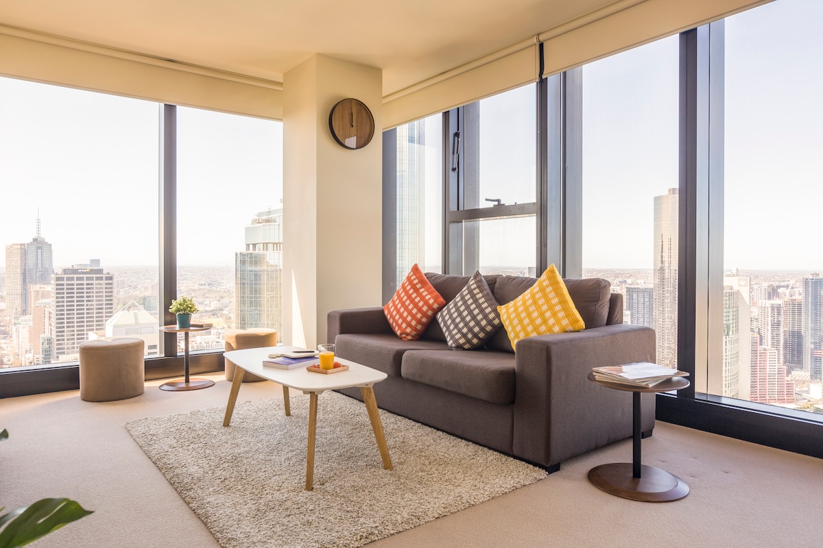 Welcome to Tammex Properties Melbourne Square. Located on the 63rd floor at Southbank's Melbourne Square precinct with uninterrupted 180 degree views of Melbourne & Port Philip Bay. Boasting 2 living areas, 3 bedrooms and 2 full sized bathrooms. Your stay at our luxury accommodation will be one to remember. Our accommodation truly has all the amenities that rival any 5 star hotel. All guests can expect 5 star service with breath-taking views, designer furniture & first class amenities.