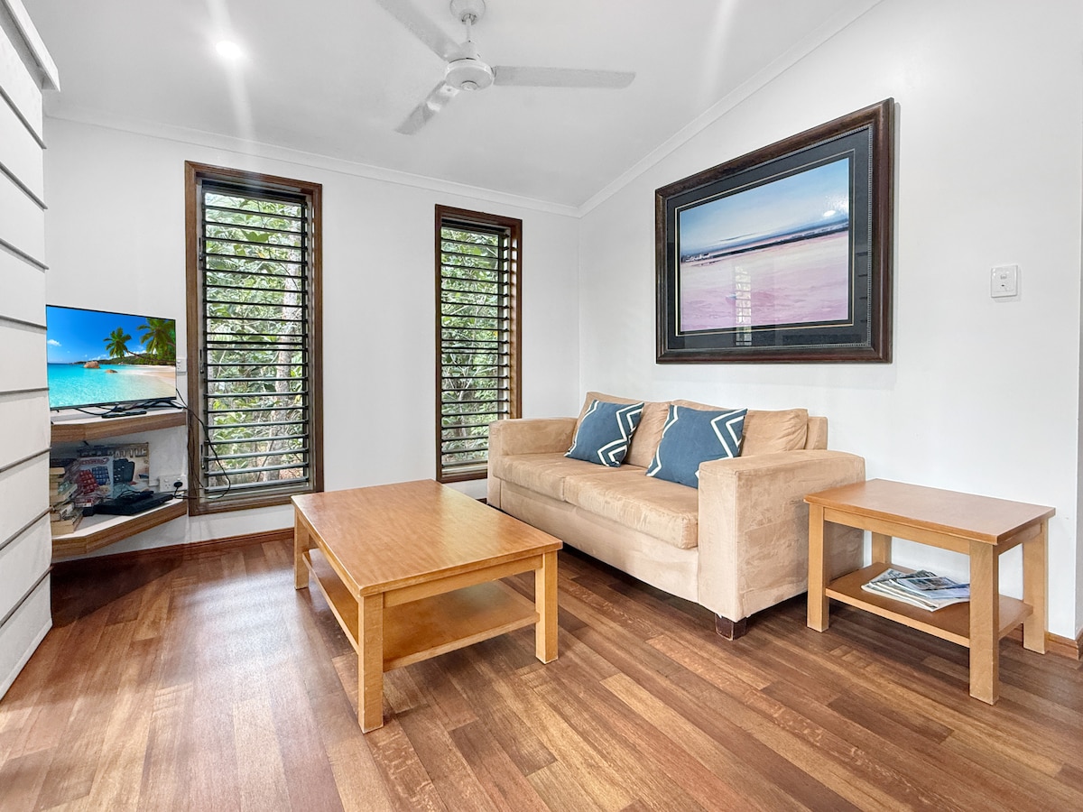 Just across from the beach, Lorikeet Cottage is a cosy rainforest retreat with a spa bath, open-plan living, kitchenette, and two private patios with BBQ. Fully fenced for pets and sharing a tropical resort-style pool, it’s the perfect spot to relax and unwind in paradise!