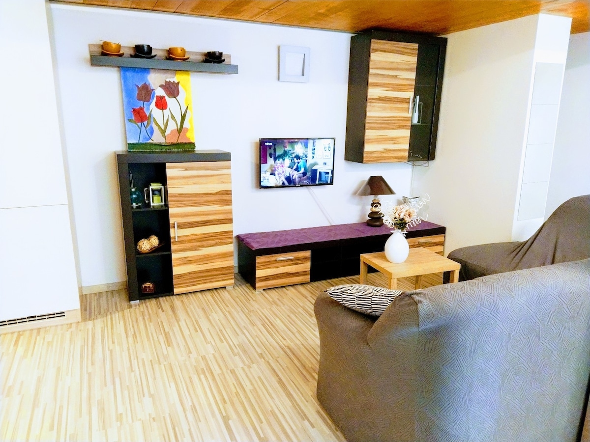 Velmi jednoduchý, ale útulný, vhodný pro dvě osoby. 4. patro ze 4. bez výtahu. Plně zařízený podle nejmodernějších standardů - kávovar, toastovač, myčka nádobí, pračka, žehlička, žehlící prkno, fén... a vše ostatní co by mohlo zůstat doma zapomenuto :-). Tichá oblast v blízkosti lesa, 30 minut jízdy MHD do centra. Na přání lze zařídit vyhrazené parkování (tato služba je již zahrnuta v ceně ubytování).