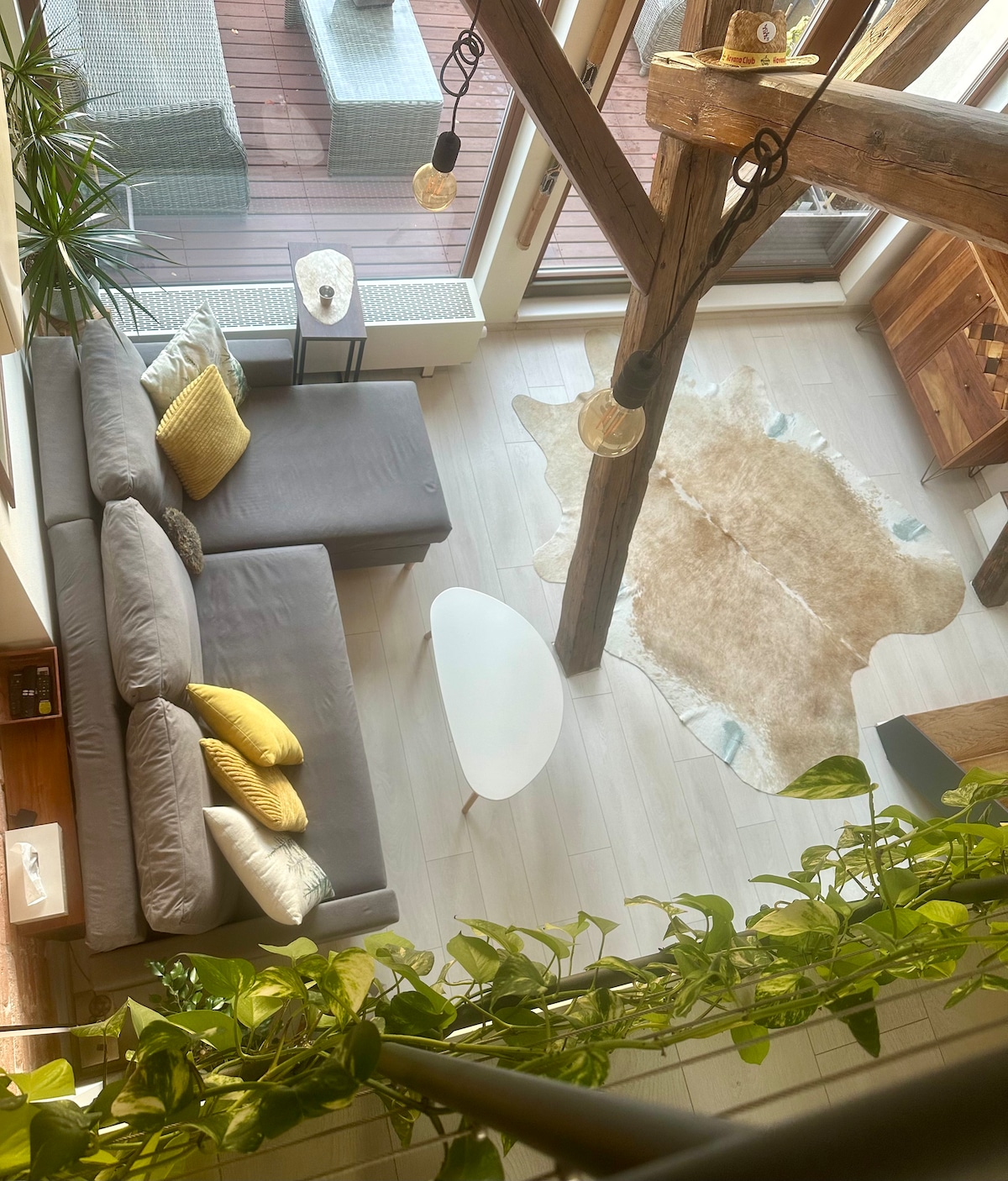 Relax vysoko nad střechami okolních domů. Minimalisticky a účelně zařízený interiér apartmánu NAD STŘECHAMI je skvělým místem pro Vaši relaxaci po dlouhé cestě nebo náročném pracovním dni. Nově vybudovaný apartmán disponuje moderní koupelnou, plně vybavenou kuchyní, maxi pohovkou a pohodlnou postelí 180*200 cm. V podkroví je palanda s dalším prostorem pro spaní přímo pod hvězdami.