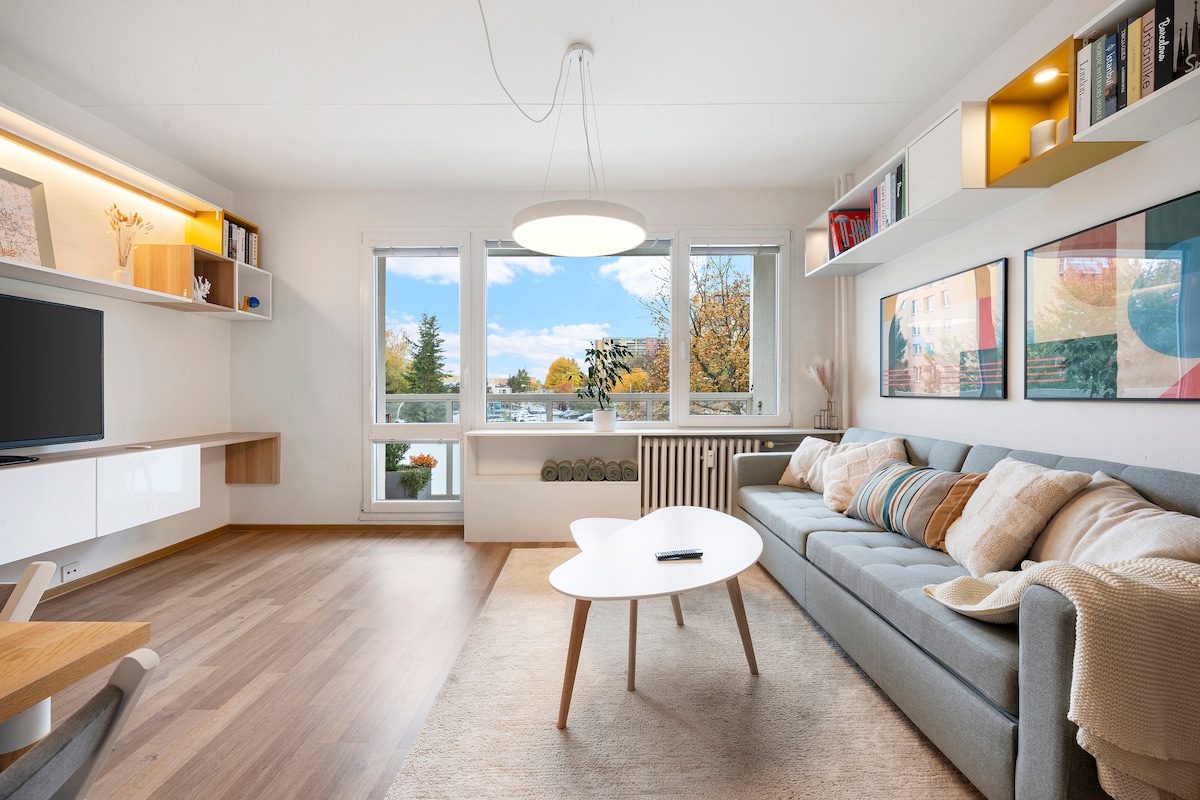 The new air-conditioned attic apartment features a double bed and a sofa bed that provides two additional sleeping areas. Includes a fitted kitchen, bathroom with shower, washing machine, hairdryer and iron. The whole apartment is covered with high-speed wifi. Cable TV is available, including HBO. Nearby is the restaurant Svatoboj, food, a popular cycle path with beautiful nature and one of the best wellness in Brno - 4comfort. We offer self-check-in!