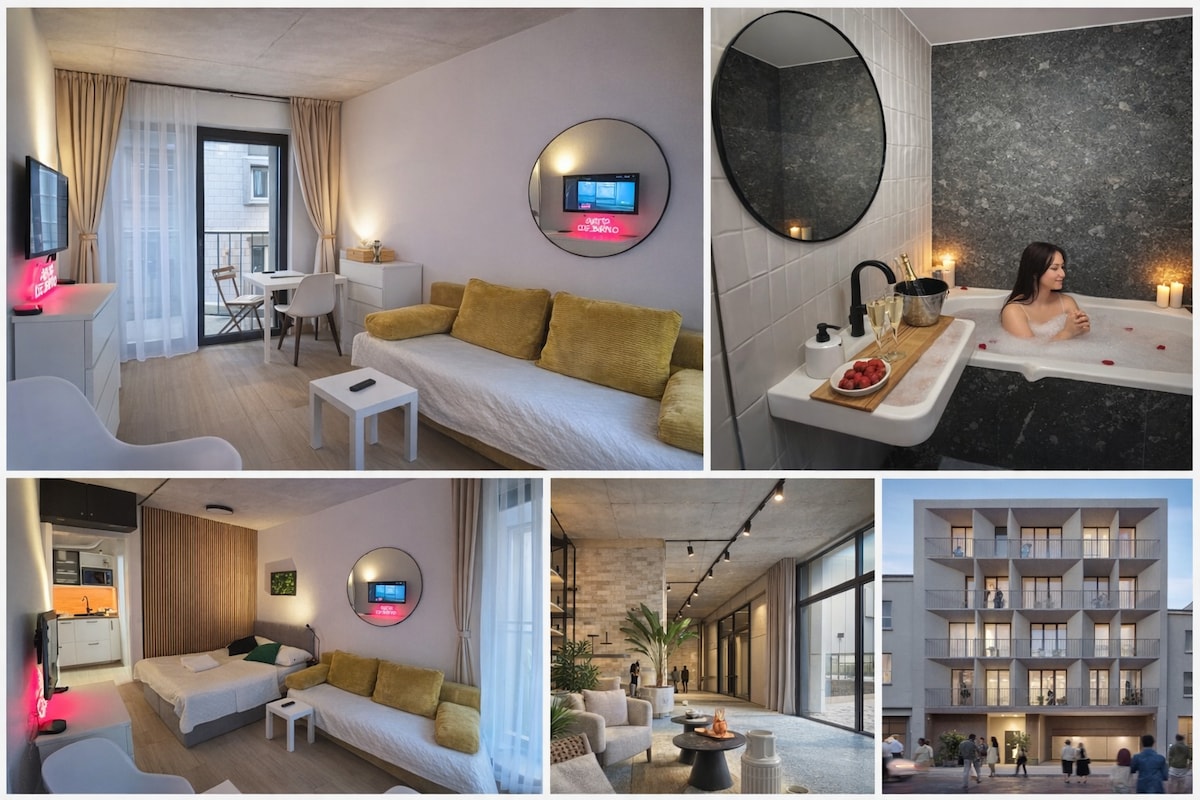 We offer luxurious accommodation up to 4 guests in the quiet Černá Pole area, just a short distance from the center of Brno. The apartment features a bedroom with a double bed, a room with a foldable double bed, a spacious living room with a 4K TV, and a fully equipped kitchen. The bathroom includes a corner bathtub 🛀, a bidet, and a toilet, plus an additional separate toilet. Relax on the large terrace with a shower or in the garden. 🚙Private parking is available. Wi-Fi is fast and strong! 🔥