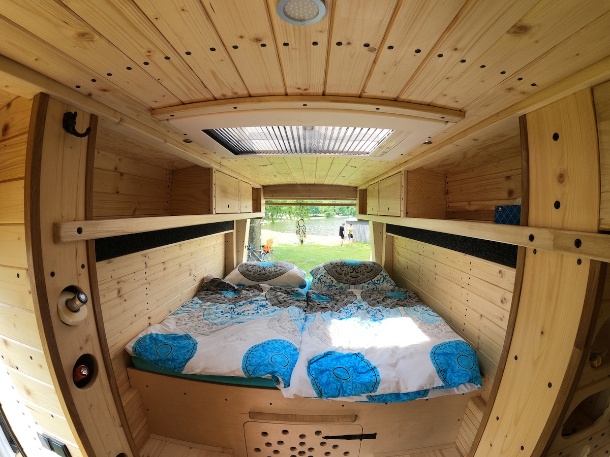 Nenápadná dodávka s útulným pokojíčkem a kuchyní uvnitř. Zcela nezávislá. Užij si léto plné svobody! - Dálkově ovládané topení - Solární panely - LiFePO4 baterie 280Ah - Měnič napětí - Dálkově ovládaná lednice s mrazákem - WC + outdoor sprcha - Vinotéka Možno vypůjčit s paddleboardy, kajakem, grilem, domácím kinem...