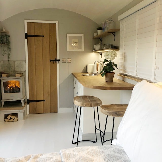 This beautiful bespoke-made sheperd’s hut is located one mile outside the charming market town of Chipping Norton. Chipping Norton is a hub of activity with a bustling well-stocked bookshop, cafés and restaurants. The sheperd’s hut is a quiet haven, equipped with a wood burning stove, mini oven, a power electric shower, underfloor heating, cosy armchairs and a king sized bed. With its beautifully appointed linens and furnishings our shepard’s hut is the perfect base for your next break.