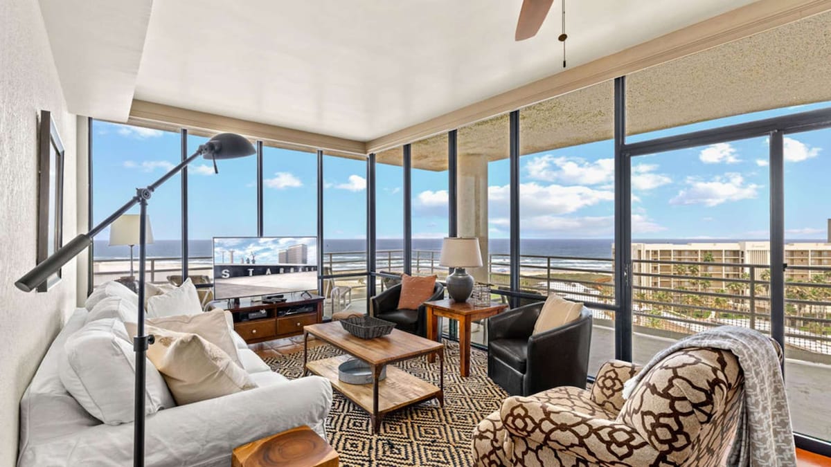 Top floor beachfront condo just steps from the ocean!! You’ll love my place because it will not feel like a rental, has the best location on the Island, breathtaking panoramic views, remodeled kitchen, grill, 2 pools ( 1 heated in the winter), 2 hot tubs, 2 tennis courts, fully equipped kitchen, comfortable beds, washer and dryer, dishwasher, 3 LCD TV's, upgraded premium Broadband internet and Wi-Fi throughout, gated parking lot and elevator. The views from the top floor are out of this world!