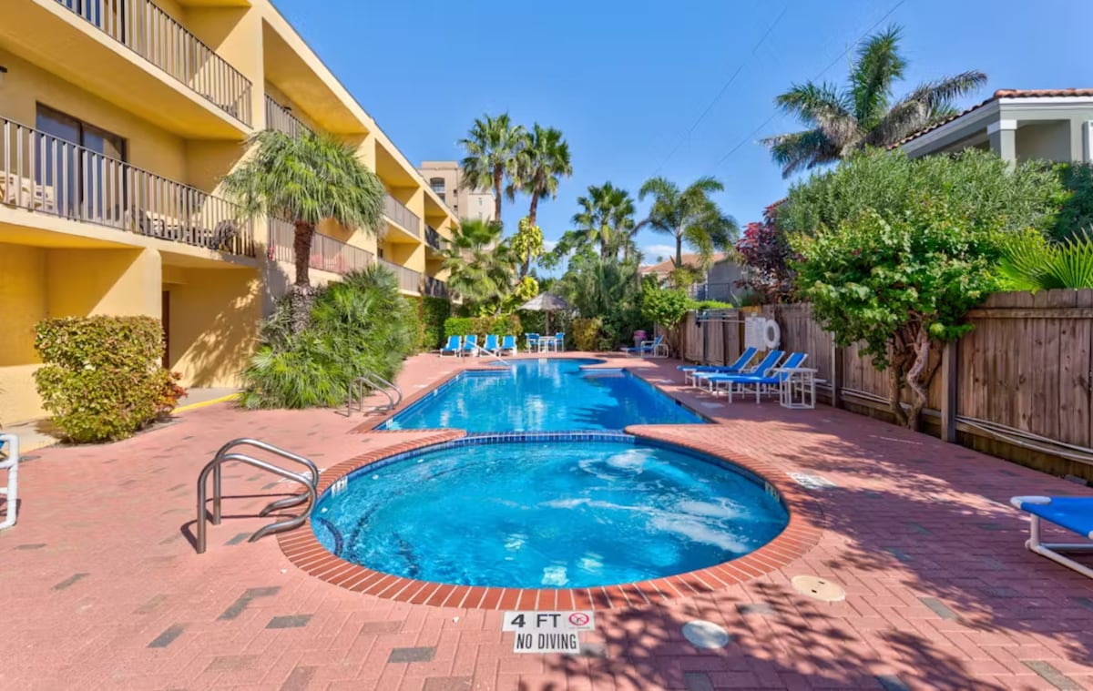 WHAT'S NOT TO LIKE? 2BR, 2 BATH. LARGER THAN MOST...SPREAD OUT 500 foot walk to one of the few SPI beach entrances with restrooms and showers. Ground floor adult living condo gets a person in the mood for salt life vacation without dragging luggage up and down stairs. Great dining with in one block walking distance e.g. Mexican food of Chilito Pikin. Craft beers from Padre Island Brewing company. Tom and Jerry's bar and grill. Josephine’s for Breakfast & Lunch, Whataburger for a quick bite.